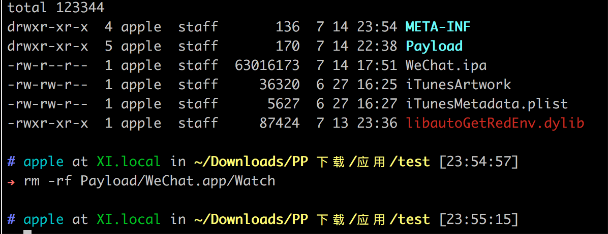 总之终于是成功了,但是如果不删微信里面 Watch 文件夹而用 AppResign 直接重签的话是不能最后安装成功的,估计重签逻辑还是有一些遗漏吧。反正 Watch 多半也是跟 iWatch 相关的功能,我也用不上就没细看了。